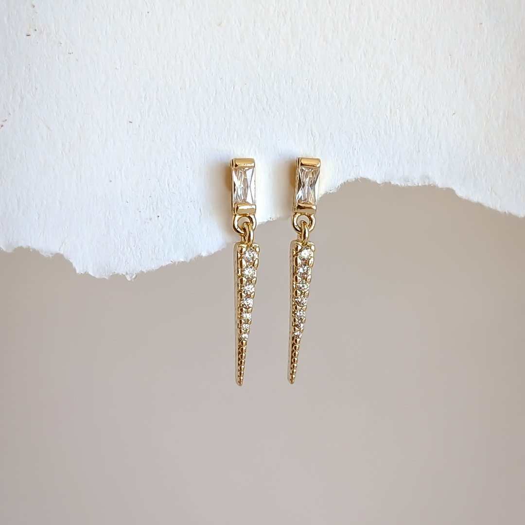 Delicate triangle earrings adorned with sparkling cubic zircon stones, perfect for everyday wear or special occasions.