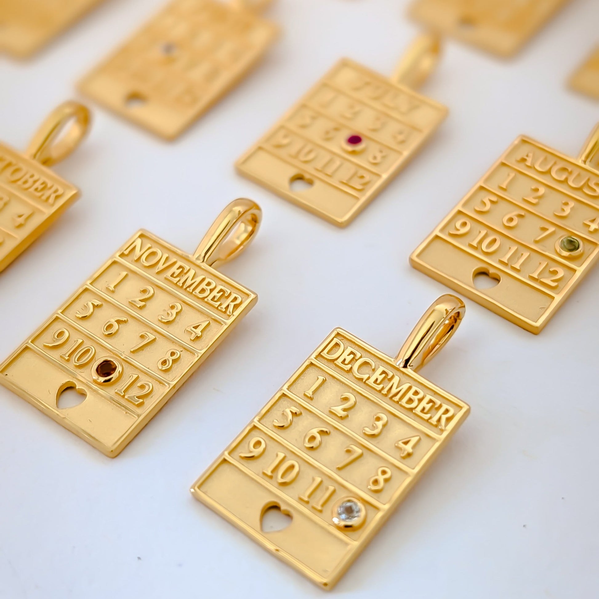 July - Ruby: Known as the "King of Gems," symbolizing passion, protection, and prosperity.