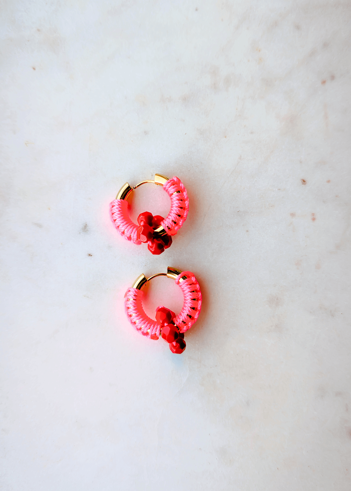 Gold Hoop Earrings Pink Cord – 18k Gold Plated | Waterproof